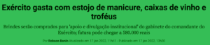 – Pra quem não se lembra, o general participou de palanque do MitÔ, o que é proibido pelos regulamentos do Exército, mas foi inocentado pelo seu comandante. Os servidores negaram a quebra alegando ‘risco aos princípios da hierarquia e da disciplina no Exército’.