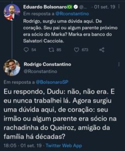 -…Dudu 03 tenta envolver o pai do Rodrigo Constantino com as tramoias do Cacciola, e o analista de Miami revida envolvendo o irmãozão do 03 com a rachadinha do Queiróz… Providenciem uma privada rápido!