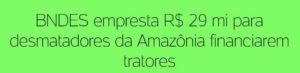 3 – A caixa preta do BNDES, uma fixação do MitÔ, finalmente foi aberta: o amigo dos filhos numerados que comanda o banco, emprestou R$29 milhões a juros subsidiados para os fazendeiros que desmatam a Amazônia comprarem tratores e maquinários agrícolas.