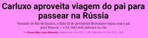 4 – As redes, estupefatas, perguntam: o que o Carluxo, vereador pelo Rio, foi fazer em Moscou? A resposta é óbvia: foi trabalhar pela cidade e por seus eleitores, ora! Todo mundo bem informado sabe que as máfias russas são as mais organizadas e poderosas do mundo…