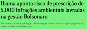 6 – Os números são irrefutáveis: relatório do Ibama aponta o risco de prescrição de mais de 5.000 autos de infração ambiental lavrados no governo do MitÔ. Eles foram lavrados em 2020 e nada foi feito até agora numa etapa de conciliação, criada pelo MitÔ, pra que os auts prossigam.
