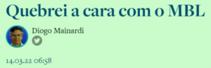 9 – Me impressionam certas figuras midiáticas que vivem cag…o* regras sobre tudo e todos e, por alguma razão, se confessam enganados por aqueles em quem acreditavam. Mainardi, por exemplo. Morista de carteirinha, descobriu, de repente, que o MBL não presta!