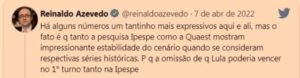 – Na minha modesta opinião, a vitória de Lula é um fato concreto… se houver eleições!