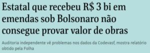 6 – Nas primeiras denúncias sobre o tal orçamento oculto – do relator – meses atrás, ficou famosa a quantidade de emendas destinadas à Codevasf, muitas para compra de tratores por prefeituras que, às vezes, nem eram do curral eleitoral do deputado benfeitor.