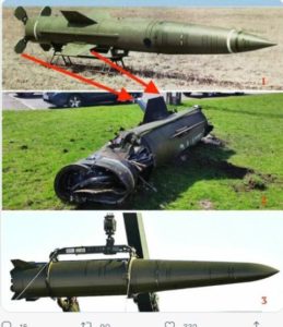 4 – O míssil do meio é oque explodiu na estação de Korsmastorski. O 2º é o míssil usado pelas forças ucranianas e o 3º é o usado pelos russos. Há uma batalha nas redes pra provar quem matou 56 civis numa estação de trem lotada de uma cidade cuja população é pró Rússia.