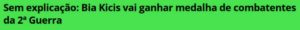 7 – A deputada Bia Kicis nasceu uns 15 anos depois da 2ª Guerra Mundial. Mesmo assim, seu peito esquerdo vai ser espetado com a Medalha da Vitória, destinada aos combatentes brasileiros nessa guerra. Ela também já foi espetada com a Medalha do Pacificador, pelo Exército.