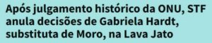 7 – A decisão do Comitê de Direitos Humanos da ONU sobre a parcialidade do ex juiz Moro, complementada pela decisão do STF anulando decisões da juíza Gabriela Hardt implica numa questão crucial para a Justiça brasileira: a juíza continuará julgando?