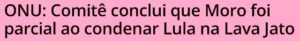 3 – A grande imprensa demorou um pouco, mas teve que se sujeitar ao fato: o grande Moro, o heroico Moro, o magnífico condutor da Lava Jato, foi considerado parcial ao julgar Lula, pelo Comitê de Direitos Humanos da ONU. Acho que cabia um pedido de desculpas, não é mesm…?