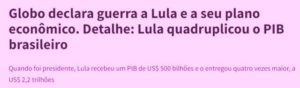 – Ao contrário, toda a grande imprensa continuou recebendo gordas verbas da SECOM, mesmo havendo uma certa democratização na distribuição destas verbas. Isto é irrelevante pros barões da Imprensa. Lula quer conscientizar o povo, e isto é ruim pros negócios…