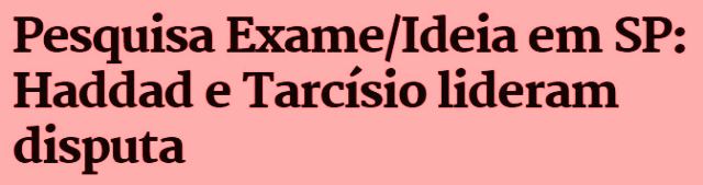 -…e os editores têm a mesma preocupação. A notícia da última pesquisa pro governo de São Paulo prova isto. Há empate na disputa entre Haddad e Tarcísio é o que induz a manchete… mas se você lê a matéria, na verdade Haddad lidera com folga em qualquer cenário.