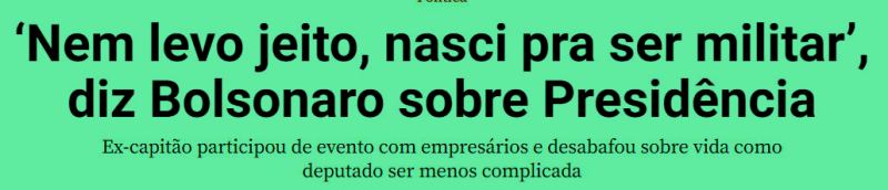 4 – Entreouvido no cercadinho do Palácio: mulher alourada com sombrinha verde amarela fala pro senhor empinado de cabelo escovinha louro esbranquiçando ao seu lado: “Bem? Ele disse isto mesmo? Que não queria ser presidente… só militar?”