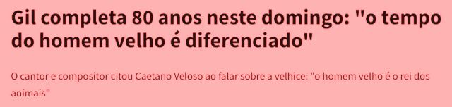 - Gilberto Gil, aos 80 anos: “a naturalidade de convívio, do estar junto em família, elimina a diferença da idade com filhos e netos. Meus filhos adultos são como irmãos. Já os netos vejo como novos filhos (…) A educação não termina nunca, vai até o túmulo”.