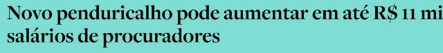 – E, mais felizes ainda, estão os procuradores que, graças ao CNMP, receberão mais um penduricalho de R$11 mil/mês, visto que estão sobrecarregados de trabalho. Que maravilha viver num país rico… desde que você faça parte dos andares mais altos da pirâmide social, né mesm…?