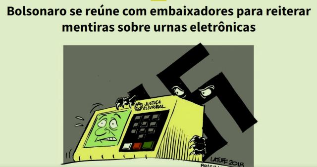 11 – Vamos ser objetivos e claros: o presidente da República do Brasil convocou representantes de muitos países do mundo (embaixadores) pra dizer que a democracia brasileira é uma farsa, vez que suas urnas eletrônicas podem ser manipuladas.