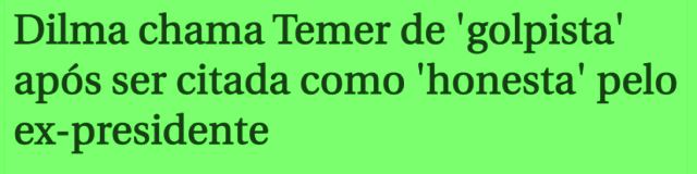 – A última cotovelada do Camarotti foi em Dilma, por ter dito, sem meias palavras, que Michel Temer é um golpista e traidor. Segundo as fontes dele, ela atrapalha a campanha, que precisa do golpista e traidor (e chefe de quadrilha) para ter o apoio do MDB no 1º turno.