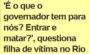 3 – Mais uma chacina no Rio… Quantas mais haverá para que a população perceba que o Rio tornou-se, há muito tempo, território sem lei e sem justiça? Que todas as instituições públicas estão corrompidas? E que cabe a ela se revoltar e botar a milícia pra correr?