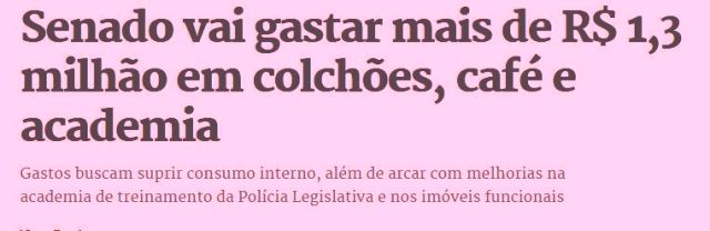 – Assim, enquanto o povo passa fome, o Senado irá gastar R$1,3 milhão pra adquirir sacos de café, material de academia pra uso da Polícia Legislativa e colchões novos pros imóveis funcionais dos senadores. O MitÔ não é o único problema do Brasil…