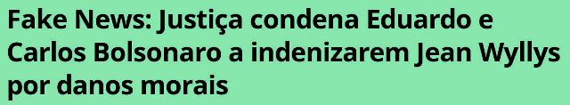 9 – Deve ser uma ofensa indizível pro Carluxo e pro Dudu 03 serem condenados pela Justiça por danos morais cometidos contra Jean Willys, um homossexual assumido, uma ofensa a Deus, como eles dizem. Por isso, xingam tanto o Judiciário, um antro do Satanás…