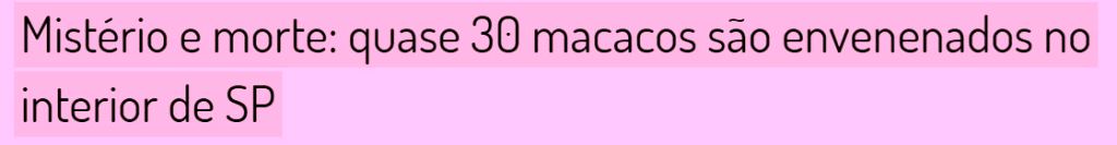 – No Estado mais rico do Brasil, num local conhecido como Floresta dos Macacos, 30 deles foram envenenados, sendo alguns agredidos por seres humanos que, certamente, adorariam ter armas para matar a todos. São imbecis a serviço do fascismo…