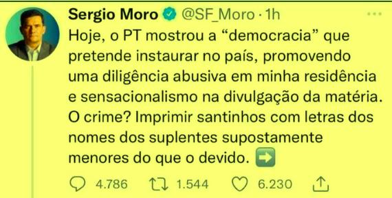 10 – Quer dizer que o ex juiz Moro acredita que juízes têm posição política e julgam ações de acordo com esta posição? Afinal, a decisão pra que a polícia fizesse busca e apreensão na casa dele foi de uma juíza e não do PT. Era assim que ele agia na Lava Jato?