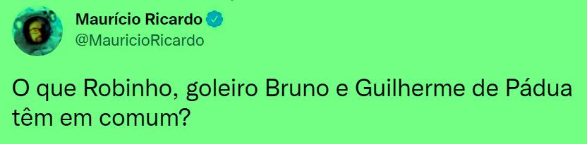 – Mas ano que vem, certamente terão algo em comum com seu MitÔ, que será julgado e condenado pelos crimes cometidos em 04 anos de desgovernança do Brasil. Minha dúvida é se cumprirá pena como Bruno e Pádua ou fugirá como Robinho.