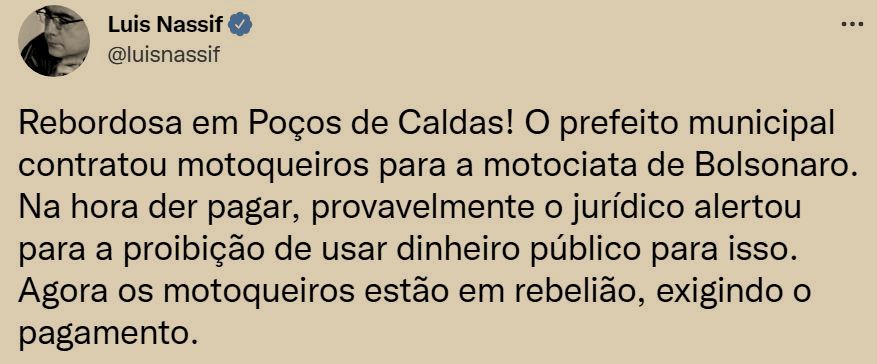 3 – Acho que esta notícia esclarece como são feitas as motociatas eleitoreiras do MitÔ, né mesm…? A numerosa comitiva presidencial é custeada pelo Tesouro Federal e pelos cartões corporativos. Os motoqueiros pelo Tesouro municipal… Eu, você, nós, enfim!