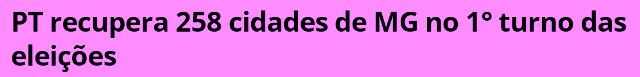 – Não há porque resmungar, ora! Lula foi mais votado em 630 das 853 cidades de Minas, recuperando a hegemonia perdida em 2018. Que a luta continue! Pode ser que o Sul e o Triângulo se sintam paulistas, mas nós temos a grande Beagá, o Norte e o Jequitinhonha nordestino…