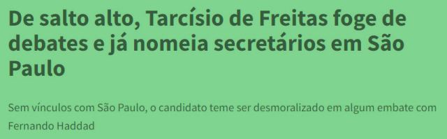 – Em 2022, Haddad esteve na frente, pelas pesquisas, até encerrar-se o 1º turno com vitória de Tarcísio de Freitas, que lidera as pesquisas no 2° turno. E que foge de debates, mas já indica secretários. Só não sentou na cadeira do Garcia… Não é uma boa tradição…