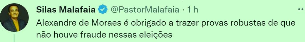 1 – Não sou versado em lei, mas sei que a Constituição ou o Código Penal é claro: quem apresenta as provas de um crime é a acusação, não o acusado. Então, sejamos legais: Malafaia é obrigado a trazer provas robustas de que houve fraude nessas eleições.
