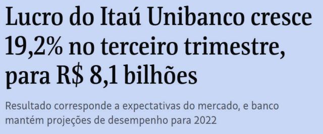 – Enquanto isto, o Itaú atinge R$8,1 bilhões de lucro no 3º trimestre de 2022. Já os esfomeados não ficam nervosos e irritados por isto… estão correndo atrás de um prato de arroz com feijão pra levar pra casa.