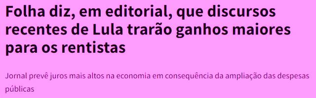 7 – Há uma óbvia contradição no alarde da grande imprensa em relação ao nervosismo do mercado com declarações de Lula. Se o editorial da Folha diz que os discursos de Lula trarão ganhos maiores pro mercado, porque ele está nervoso?