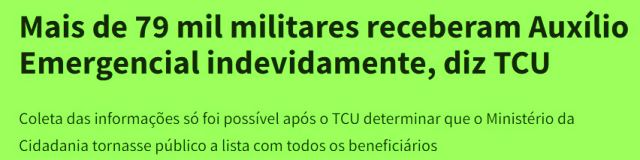 – Neste governo, mais de 06 mil militares ocupam postos na administração civil, e a propalada competência militar produziu o caos em que vivemos. Assim como sua proverbial honestidade foi pras cucuias: 79.000 milicos receberam Auxílio Emergencial indevidamente…