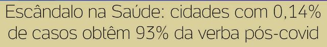 – pequenas cidades do Maranhão receberam R$19,7 milhões em verbas de atendimento pós-covid, enquanto o resto do Brasil, com 34 milhões de casos de covid, recebeu R$ 1,4 milhão. Sarney fez escola…