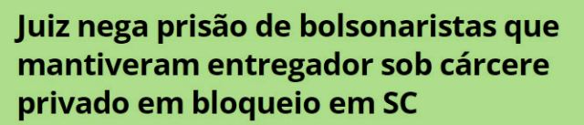 5 – Num dos bloqueios em rodovias de Santa Catarina, um motorista de frete foi mantido em cárcere privado por 03 bolsonaristas. Depois de libertado, identificou os bandidos e acusou-os ao MP e à polícia, que pediram a prisão deles. Mas um juiz negou.