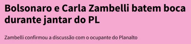 9 – O jantar do MitÔ com parlamentares de seu PL foi bem quente. Além de vaias ao presidente da Câmara, teve discussão entre o MitÔ e La Zambelita. Diz ela que nada a ver com sua performance como pistoleira pelas ruas de São Paulo, mas participantes dizem que sim.