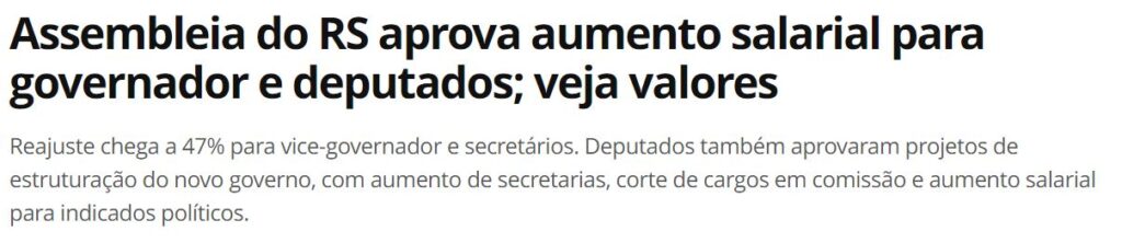 – O fato é que a cada eleição, antes da posse, a última providência das Assembleias e Congresso é propor aumento de salário dos eleitos. A de São Paulo aprovou aumento de 50% e a do Rio está querendo 62%. Privilégios de um país cujo povo é passivo e conformado…