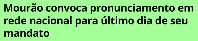 – Com a fuga do MitÔ, ele assume, legalmente, a Presidência e, por isso, convoca rede nacional de tevê prum pronunciamento presidencial. Mas se recusa a entregar a faixa ao eleito presidente Lula, uma tradição, alegando que seu mandato termina dia 31/12.
