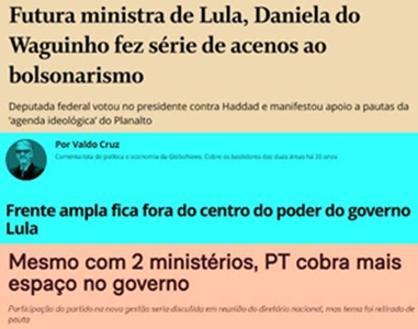 9 – A grande imprensa precisa decidir: ou Lula vai governar com viés de esquerda, contrariando o Mercado, ou se compôs com a política tradicional, beneficiando o Centrão. O que não dá é ela dizer um dia que a Frente Ampla foi esquecida, e noutro, criticar posturas dos escolhidos.