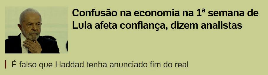 – Lucros em caixa, a grande imprensa dá manchete dizendo que “confusão” na economia provoca desconfiança no governo e um subtítulo desmentindo o fim do real… E Bolsa e dólar se reequilibram… até a próxima jogada!