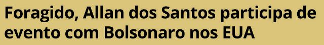 9 – O governo já mudou, o ministro da Justiça já mudou, o DG da Polícia Federal já mudou… e o fugitivo Allan dos Santos continua visível em manifestações e aparições públicas de seu mito sem ser incomodado pelas autoridades brasileiras ou pela Interpol.