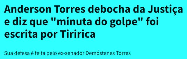 1 – A esta altura das investigações do golpe, com o ex-mitô tentando se manter longe do Brasil, o que leva alguns de seus operadores a se comprometerem judicialmente pra livrá-lo de alguma culpa? Marcos do Val, Anderson Torres, Waldemar… preferem a prisão?
