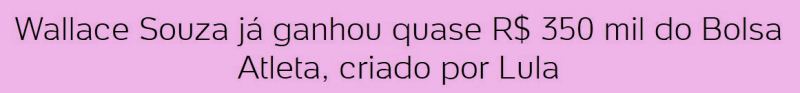 7 – Uns chamam de ingratidão, outros de mau caratismo mesmo. O fato é que o jogador Wallace, uma estrela do vôlei, pra se dedicar ao esporte, recebeu R$350 mil do Bolsa Atleta, um programa criado pelo Lula. Deve achar que venceu na vida apenas pelo próprio esforço.