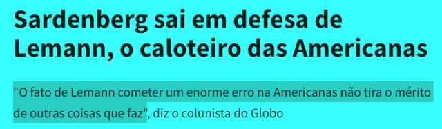 3 – “O fato de Lula cometer um enorme erro na Petrobras não tira o mérito de outras coisas que faz.” Não, não foi esta a frase que o Sardenberg, o homem do Mercado n’O Globo disse. Ele disse isto sobre o Lemman em relação ao golpe das Lojas Americanas.