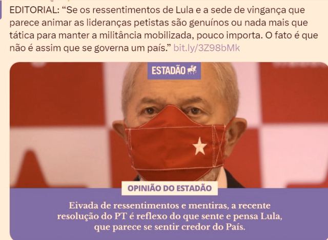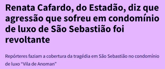 – Se não, deviam, pelo menos, abrir processo por calúnia e difamação… Afinal, os agressores chamaram a repórter e o fotógrafo de “comunista e esquerdista”, uma ofensa gravíssima ao Estadão!
