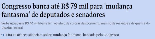 – Já nossos parlamentares não precisam deste esforço: cada um deles está recebendo R$79 mil pra se mudar pra Brasília, mesmo aqueles que foram reeleitos e já moram na capital. E vários deles ainda reclamam da democracia…