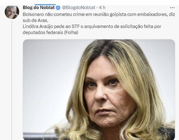 3 – É sabido que uma das razões pra que o ex-mitô passasse 04 anos tentando destruir todas as políticas sociais vigentes no Brasil nos últimos anos, foi a atuação da mão direita do PGR, Lindôra Araújo, que arquivava toda e qualquer denúncia contra ele.
