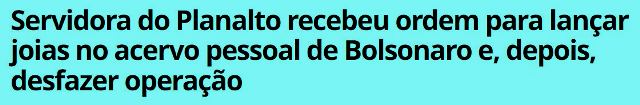 9 – Esqueçam um pouco o, a esta altura, mais do que comprovado afano de joias no valor de uns 20 milhões pelo ex-mitô e me ajudem a entender isto: porque uma sargenta da Força Aérea presta serviços de escriturária no Palácio do Planalto?