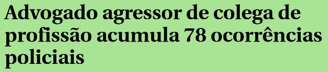 9 – O vídeo com um advogado agredindo uma advogada na rua por causa de uma briga de cachorros, emputeceu muita gente nas redes. Mas ninguém se preocupa com a raíz deste fato: o agressor tem 78 ocorrências policiais por desacato, injúria, ameaça e lesão corporal. E nunca foi preso!