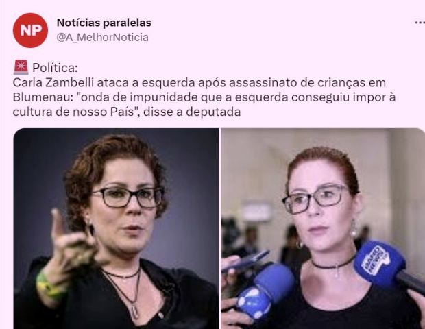 9 – La Zambelita voltando ao palco enquanto permanece licenciada por problemas de saúde: o assassinato de crianças em Blumenau é consequência da “”onda de impunidade que a esquerda conseguiu impor à cultura de nosso País”.