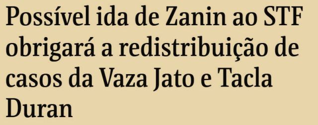 -…e, é óbvio, seja qual for a sua escolha, ele será malhado. Por ser “antiético” se for Zanin ou porque quer se vingar do Moro – se for outro, garantista como Lewandowski, pois o indicado herdará seus processos relativos à Lava Jato, o que não ocorrerá se for Zanin.